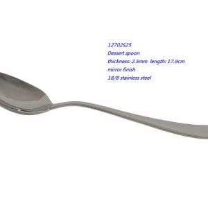 - 12702S25 Dessert spoon thickness: 2.5mm length: 17.9cm mirror finish 18/8 stainless steel