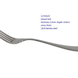 - 12703S25 Dessert fork thickness: 2.5mm length: 18.8cm mirror finish 18/8 stainless steel