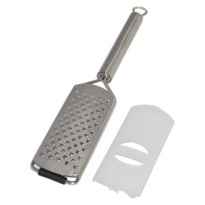 KN6427 S/S flat grater with plastic cover 18/8 S/S round tube handle(20mmDx126mmL ) & hook total length 298mm
