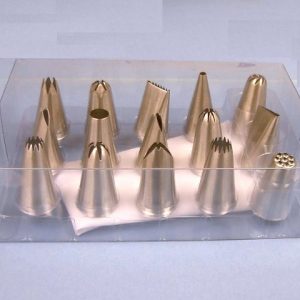 - BK5370 Nozzle set base dia. 2.5cm 15 designs satin finish with a nylon bag 18/8 stainless steel