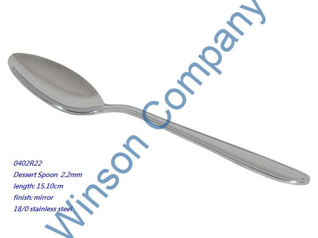 - 0402R22 Dessert Spoon 2.2mm length: 15.10cm finish: mirror 18/0 stainless steel