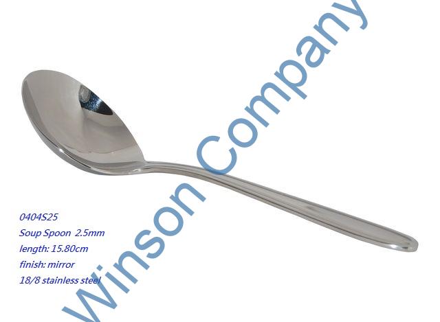 - 0404S25 Soup Spoon 2.5mm length: 15.80cm finish: mirror 18/8 stainless steel