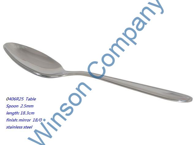 - 0406R25 Table Spoon 2.5mm length: 18.3cm finish: mirror 18/0 stainless steel