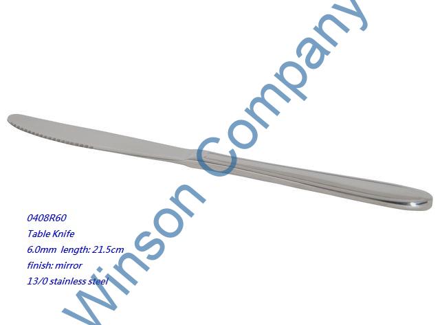 - 0408R60 Table Knife 6.0mm length: 21.5cm finish: mirror 13/0 stainless steel