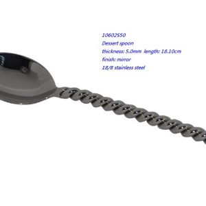 - 10602S50 Dessert spoon thickness: 5.0mm length: 18.10cm finish: mirror 18/8 stainless steel