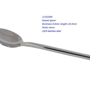 - 11302S80 Dessert spoon thickness: 8.0mm length: 18.30cm finish: mirror 18/8 stainless steel