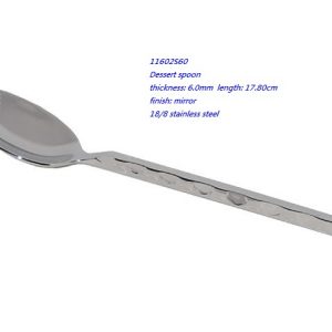 - 11602S60 Dessert spoon thickness: 6.0mm length: 17.80cm finish: mirror 18/8 stainless steel