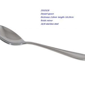 - 2502S28 Dessert spoon thickness: 2.8mm length: 18.20cm finish: mirror 18/8 stainless steel