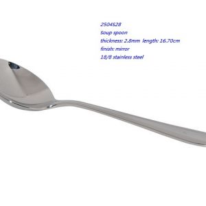 - 2504S28 Soup spoon thickness: 2.8mm length: 16.70cm finish: mirror 18/8 stainless steel