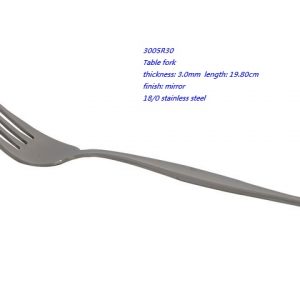 - 3005R30 Table fork thickness: 3.0mm length: 19.80cm finish: mirror 18/0 stainless steel