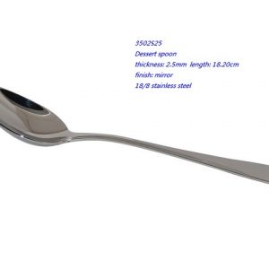 - 3502S25 Dessert spoon thickness: 2.5mm length: 18.20cm finish: mirror 18/8 stainless steel