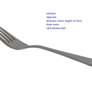 - 3505S28 Table fork thickness: 2.8mm length: 19.70cm finish: mirror 18/8 stainless steel