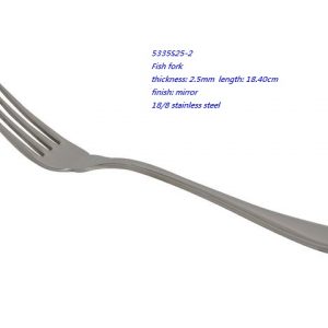 - 5335R25 Fish fork thickness: 2.5mm length: 18.30cm finish: mirror 18/0 stainless steel