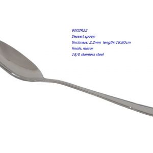 - 6002R22 Dessert spoon thickness: 2.2mm length: 18.80cm finish: mirror 18/0 stainless steel