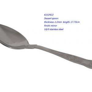 - 6102R22 Dessert spoon thickness: 2.2mm length: 17.70cm finish: mirror 18/0 stainless steel