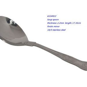 - 6104R22 Soup spoon thickness: 2.2mm length: 17.30cm finish: mirror 18/0 stainless steel
