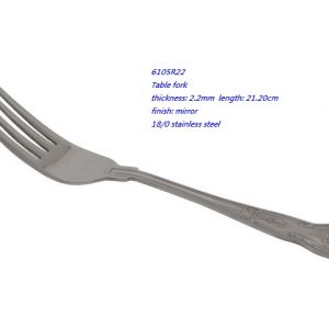 - 6105R22 Table fork thickness: 2.2mm length: 21.20cm finish: mirror 18/0 stainless steel