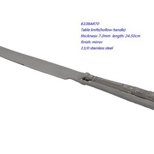 - 6108AR70 Table knife(hollow handle) thickness: 7.0mm length: 24.50cm finish: mirror 13/0 stainless steel