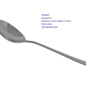 - 6204R22 Soup spoon thickness: 2.2mm length: 17.30cm finish: mirror 18/0 stainless steel