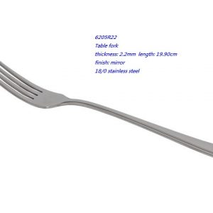 - 6205R22 Table fork thickness: 2.2mm length: 19.90cm finish: mirror 18/0 stainless steel