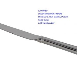 - 6207AR60 Dessert knife(hollow handle) thickness: 6.0mm length: 22.30cm finish: mirror 13/0 stainless steel