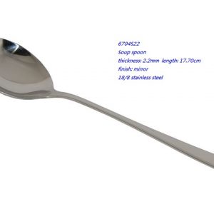 - 6704S22 Soup spoon thickness: 2.2mm length: 17.70cm finish: mirror 18/8 stainless steel