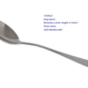 - 7304S22 Soup spoon thickness: 2.2mm length: 17.50cm finish: mirror 18/8 stainless steel