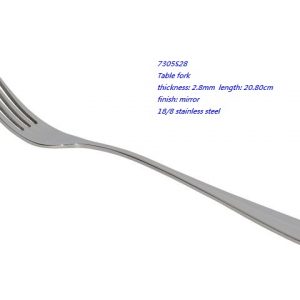 - 7305S28 Table fork thickness: 2.8mm length: 20.80cm finish: mirror 18/8 stainless steel