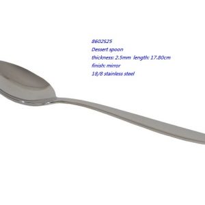 - 8602S25 Dessert spoon thickness: 2.5mm length: 17.80cm finish: mirror 18/8 stainless steel