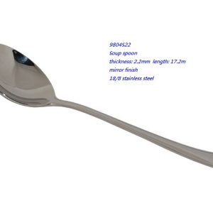 - 9804S22 Soup spoon thickness: 2.2mm length: 17.2m mirror finish 18/8 stainless steel