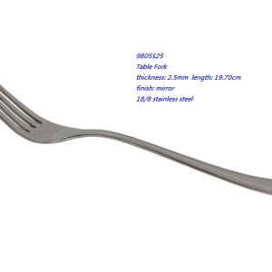 - 9805S25 Table Fork thickness: 2.5mm length: 19.70cm finish: mirror 18/8 stainless steel