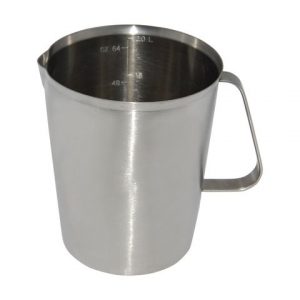 - TB0039-V2000 Water pitcher with sheet handle 15cm dia capacity: 2L 17.3cm in height thickness: 0.8mm Exclusive in USA. 18/8 stainless steel